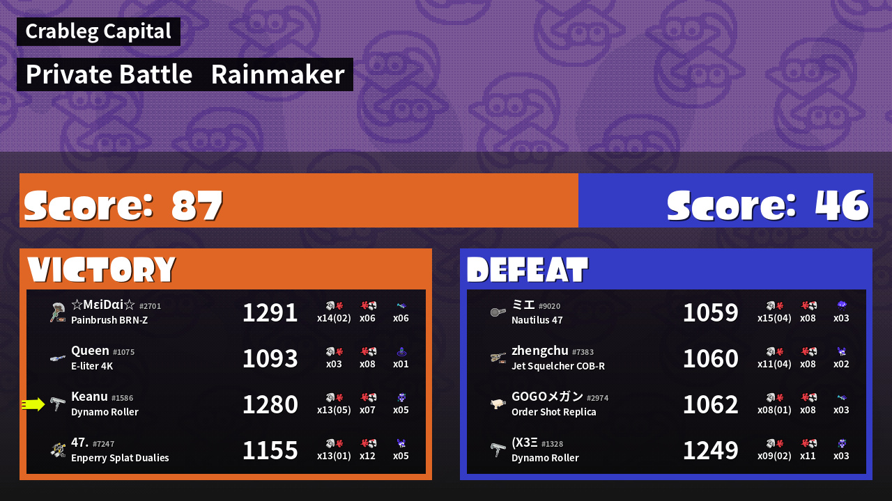 | Medals | #1 Splat Assister #1 Tacticooler User #2 Overall Splatter | ||