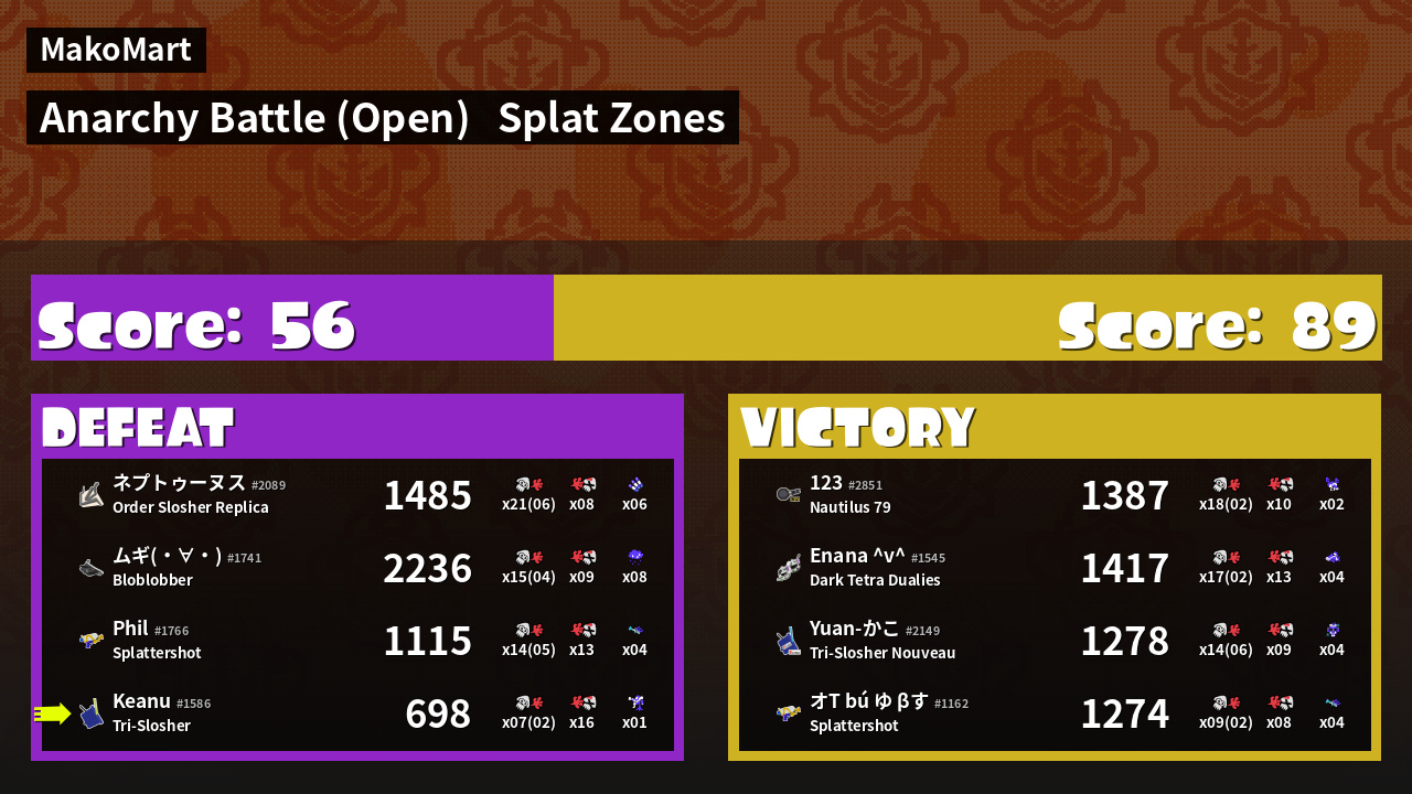 | Mode | Splat Zones - Anarchy Battle (Open) | ||