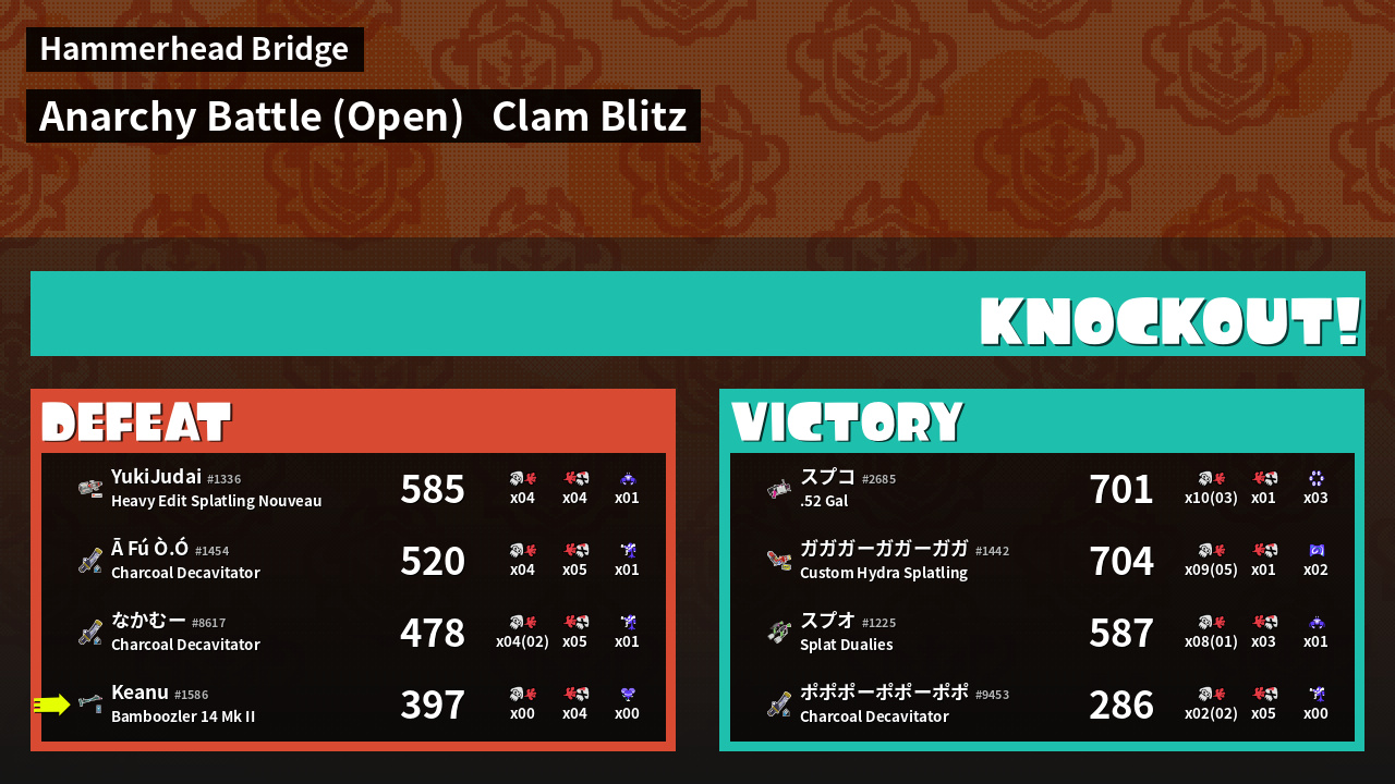 | Mode | Clam Blitz - Anarchy Battle (Open) | ||