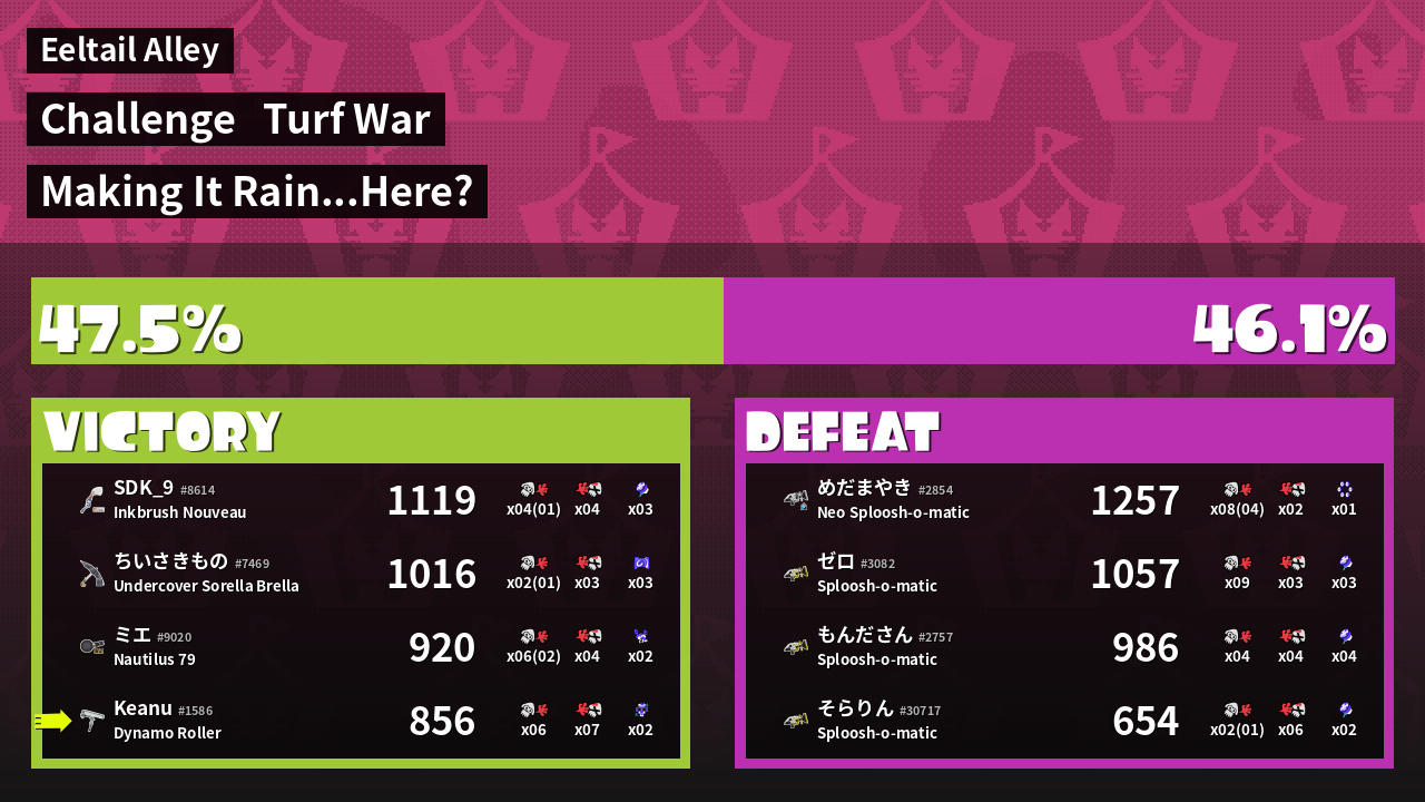| Mode | Turf War - Challenge | ||
