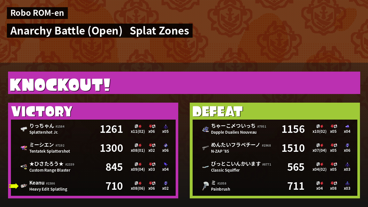 | Mode | Splat Zones - Anarchy Battle (Open) | ||