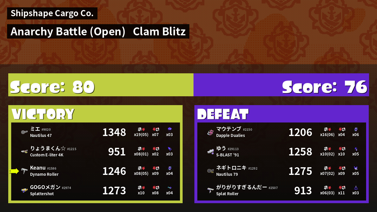 | Mode | Clam Blitz - Anarchy Battle (Open) | ||