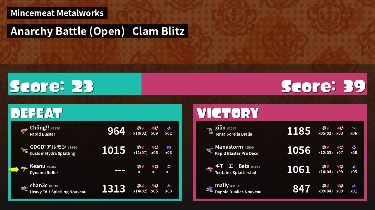 | Mode | Clam Blitz - Anarchy Battle (Open) | ||