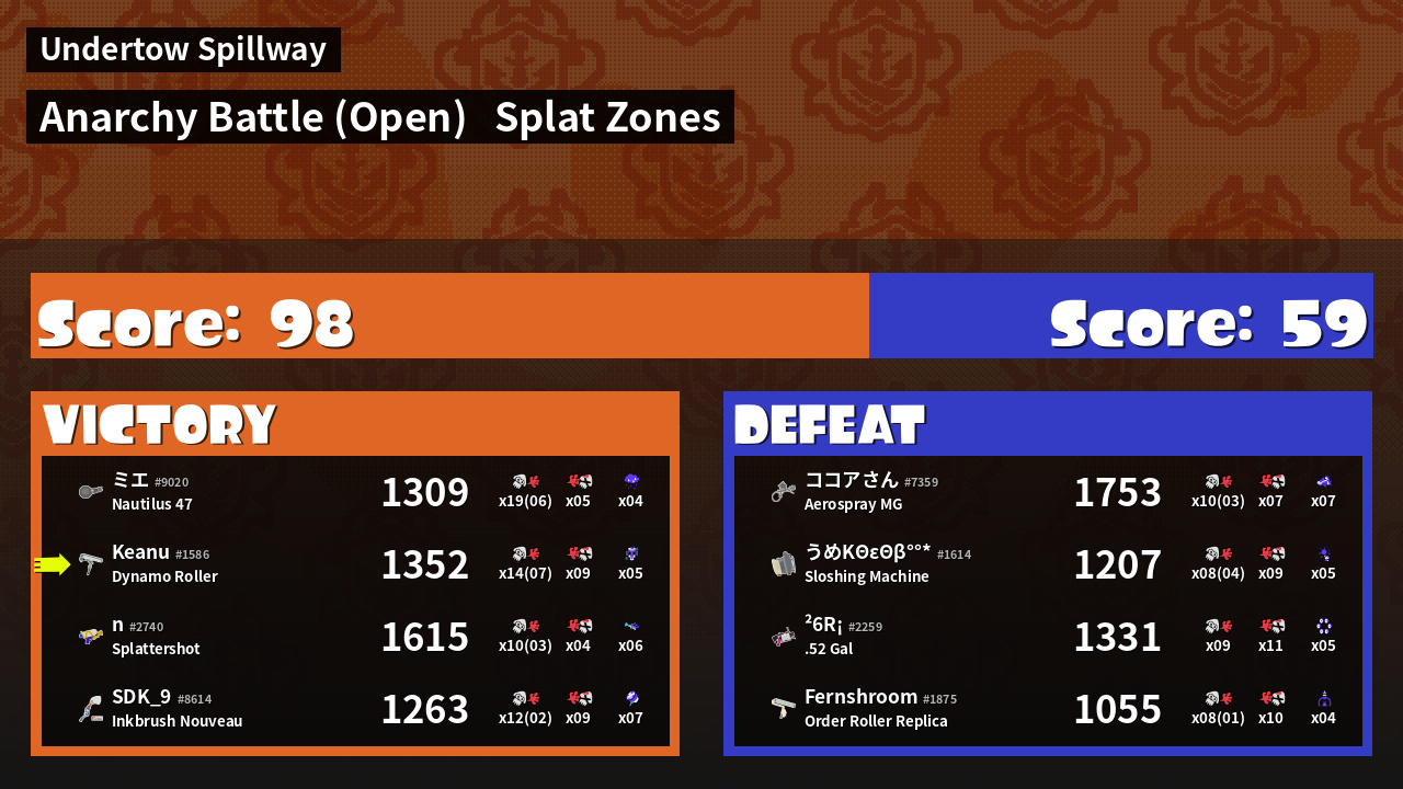| Mode | Splat Zones - Anarchy Battle (Open) | ||