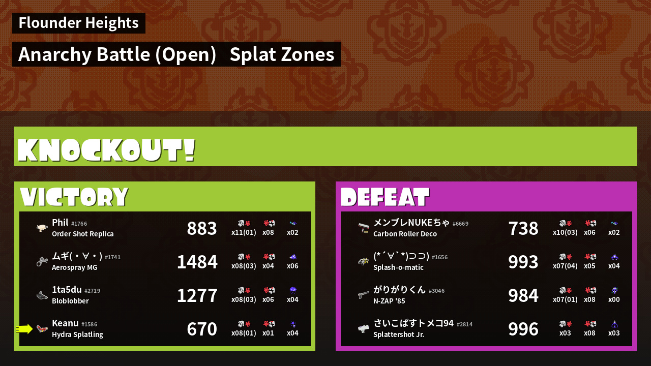 | Mode | Splat Zones - Anarchy Battle (Open) | ||
