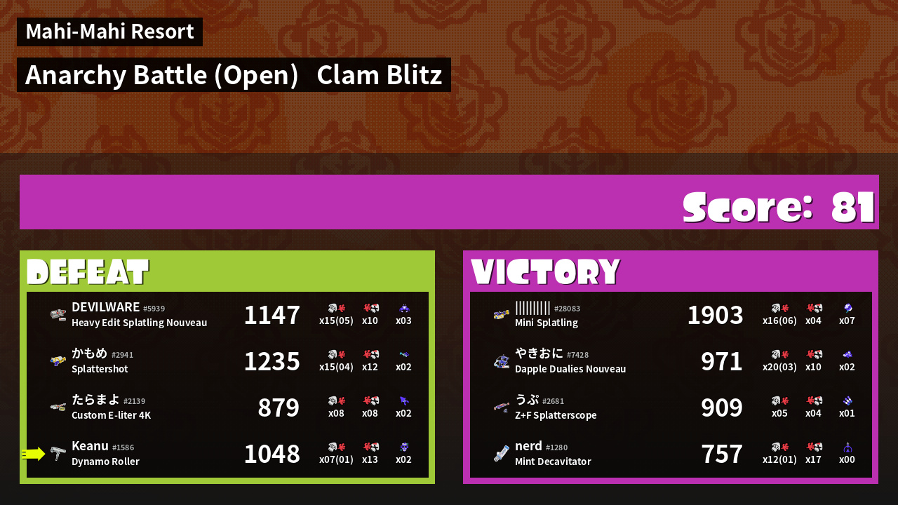 | Mode | Clam Blitz - Anarchy Battle (Open) | ||