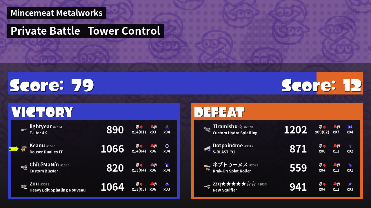 | Mode | Tower Control - Private Battle | ||
