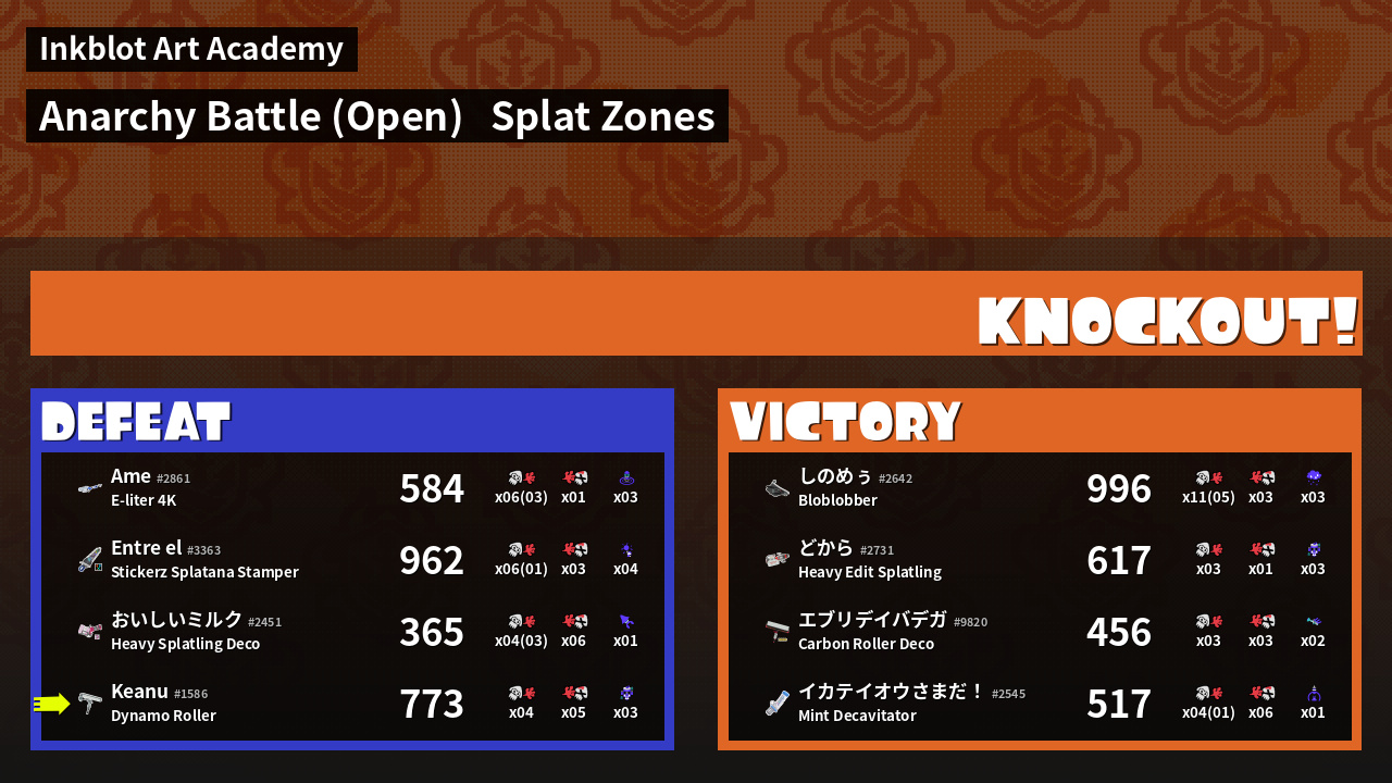 | Mode | Splat Zones - Anarchy Battle (Open) | ||
