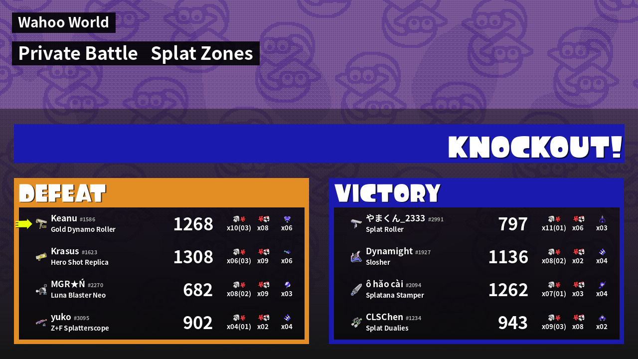 | Mode | Splat Zones - Private Battle | ||