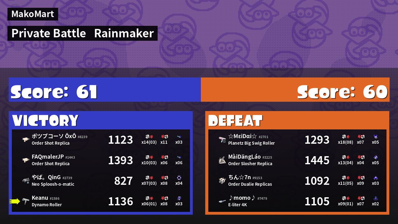 | Weapon | Dynamo Roller ( Sprinkler / Tacticooler) | ||