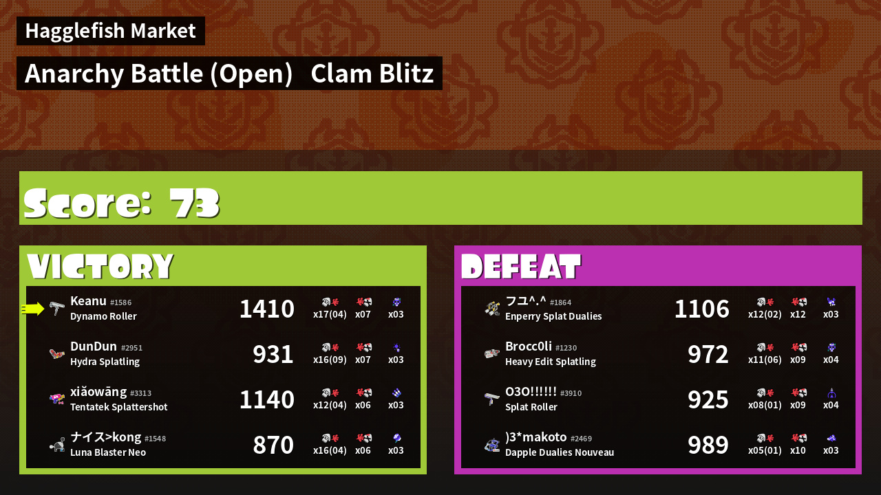 | Mode | Clam Blitz - Anarchy Battle (Open) | ||
