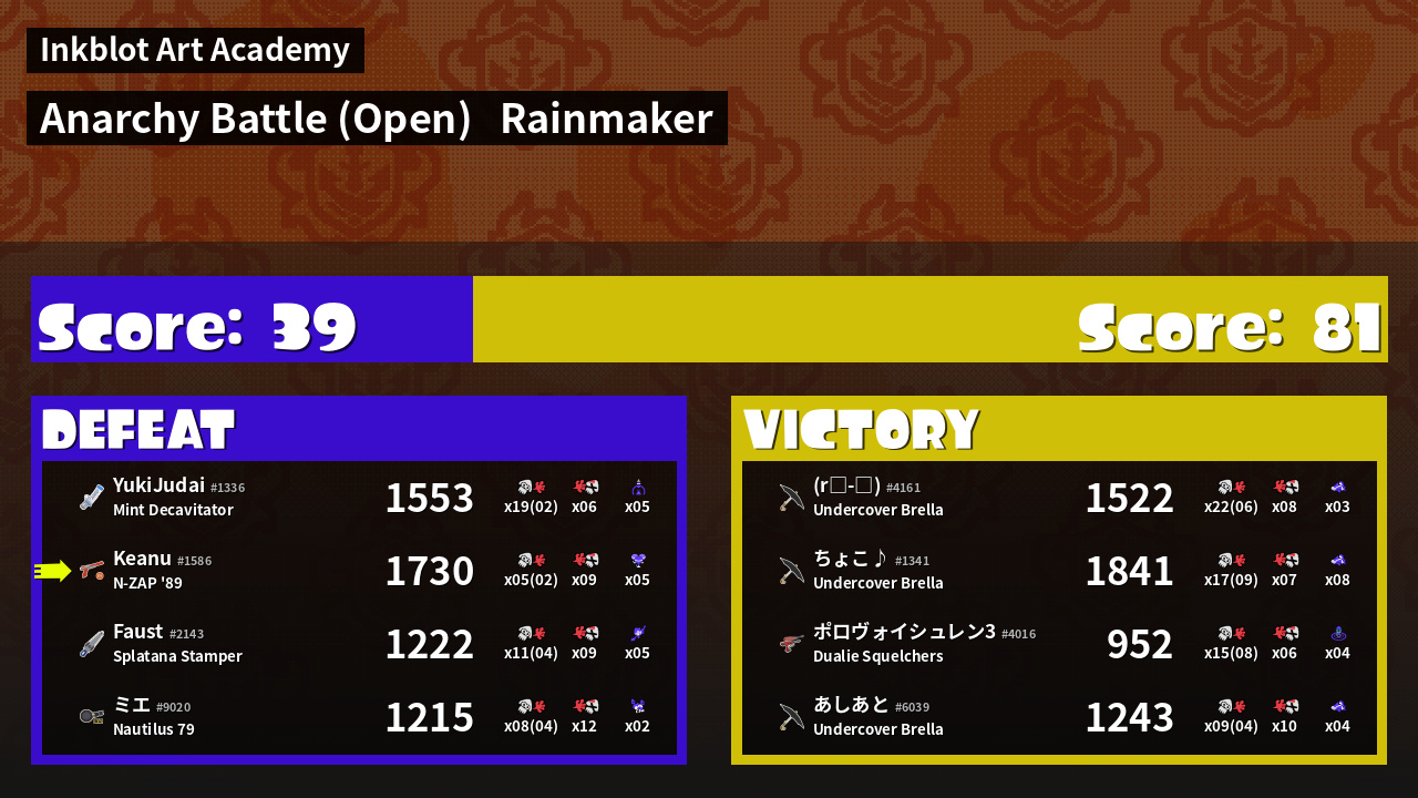 | Mode | Rainmaker - Anarchy Battle (Open) | ||