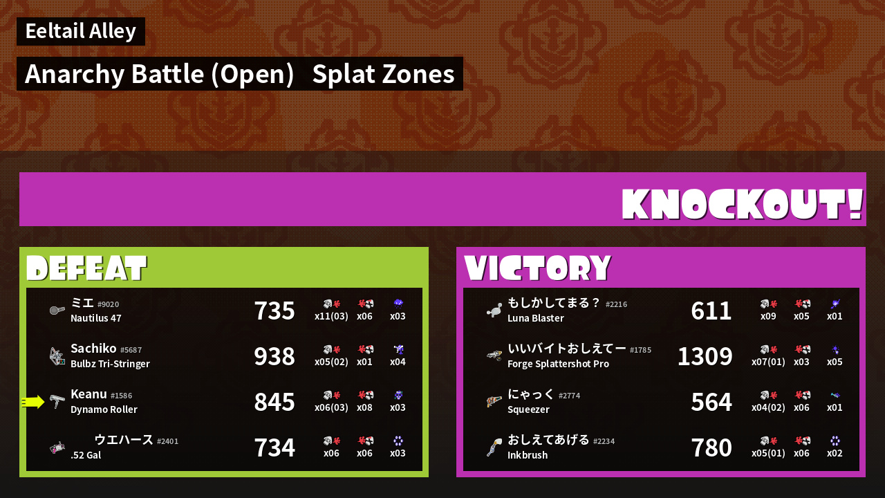 | Mode | Splat Zones - Anarchy Battle (Open) | ||