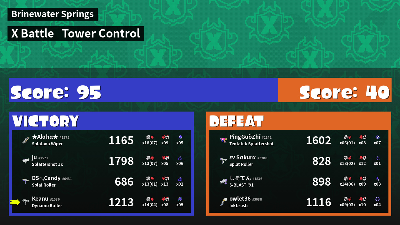 | Medals | #1 Checkpoint Breaker #1 Tacticooler User #2 Overall Splatter | ||