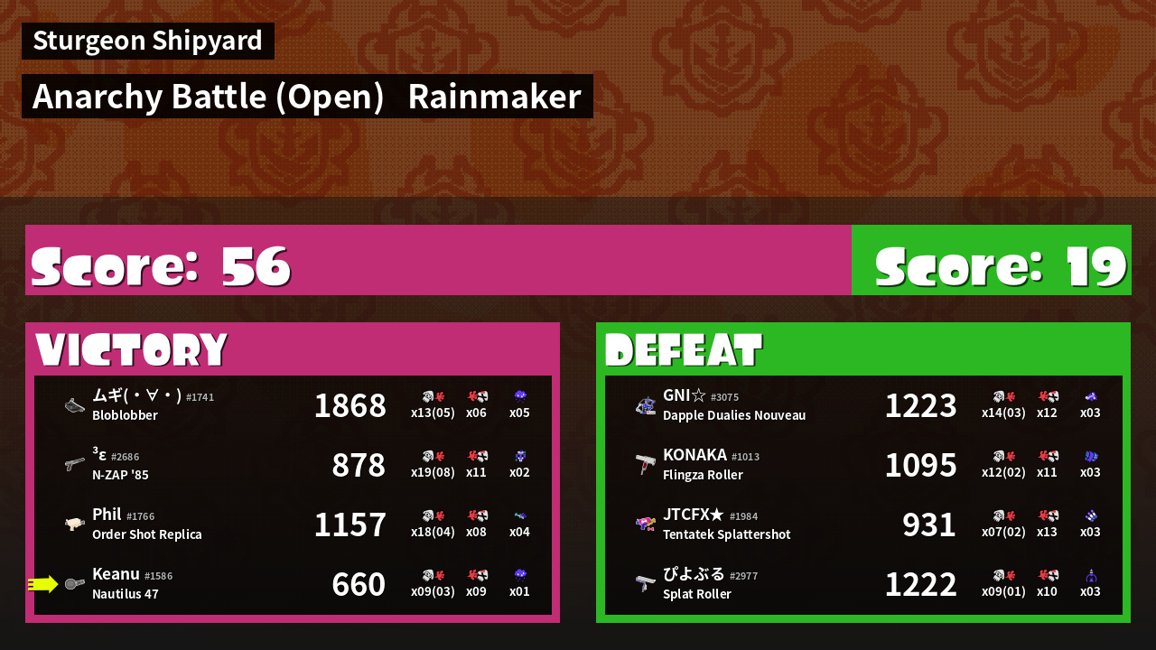 | Mode | Rainmaker - Anarchy Battle (Open) | ||