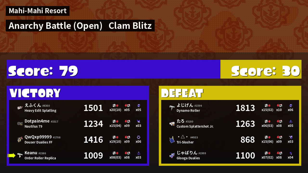 | Mode | Clam Blitz - Anarchy Battle (Open) | ||