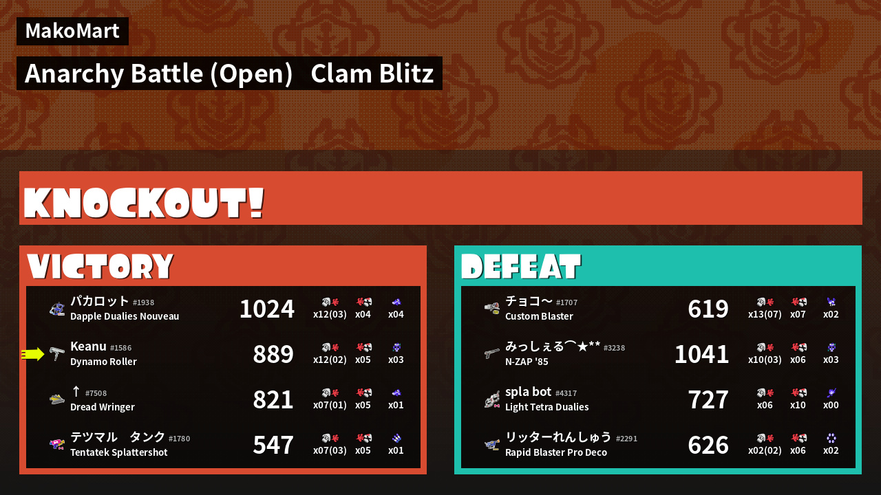 | Mode | Clam Blitz - Anarchy Battle (Open) | ||