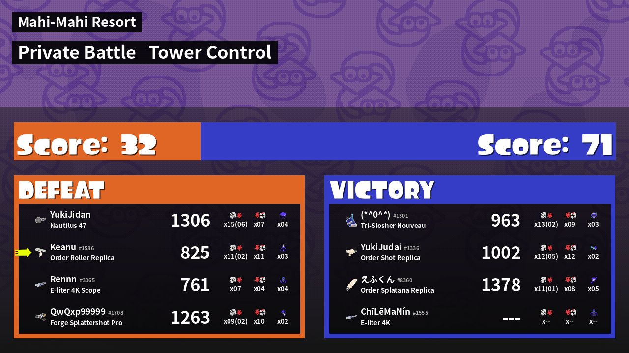 | Mode | Tower Control - Private Battle | ||