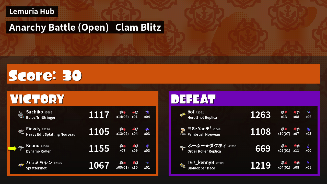 | Mode | Clam Blitz - Anarchy Battle (Open) | ||