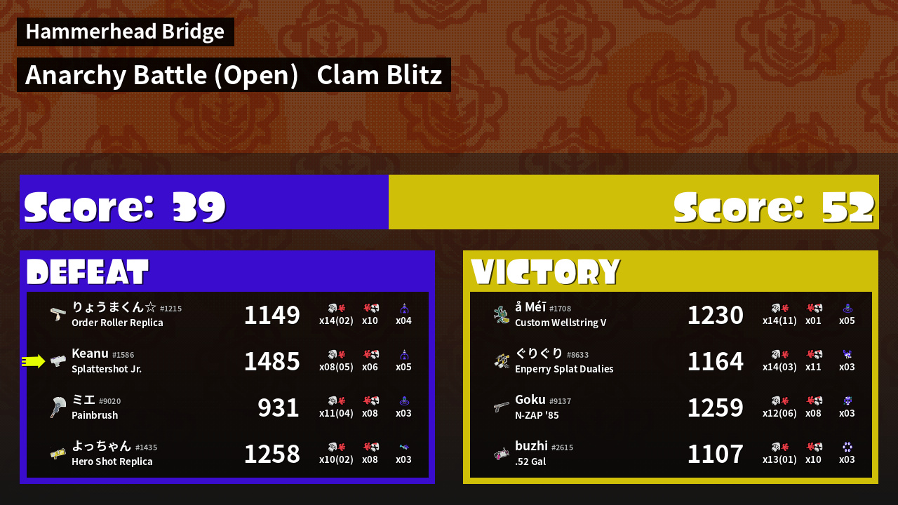 | Mode | Clam Blitz - Anarchy Battle (Open) | ||