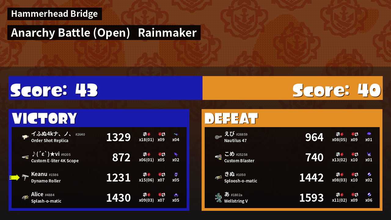 | Mode | Rainmaker - Anarchy Battle (Open) | ||