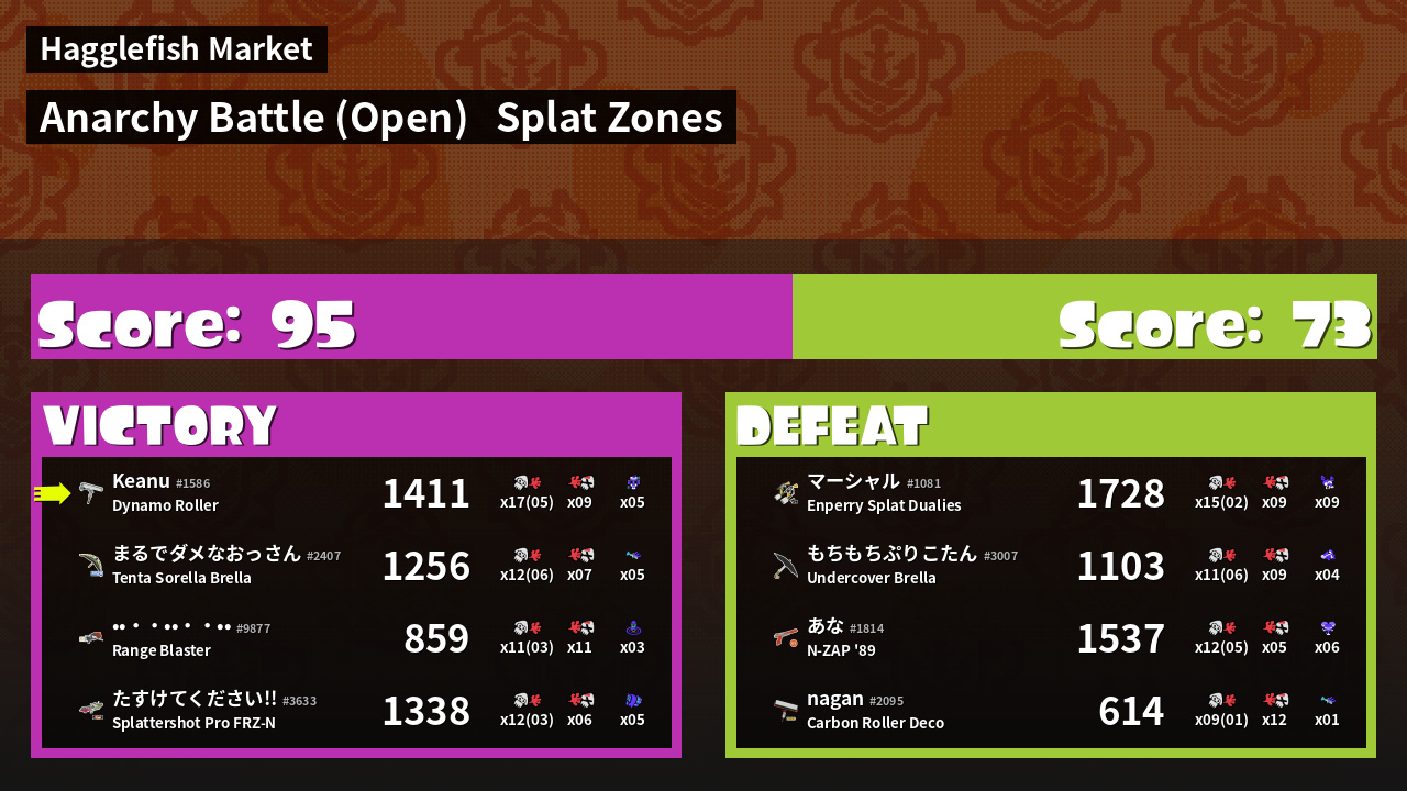| Mode | Splat Zones - Anarchy Battle (Open) | ||