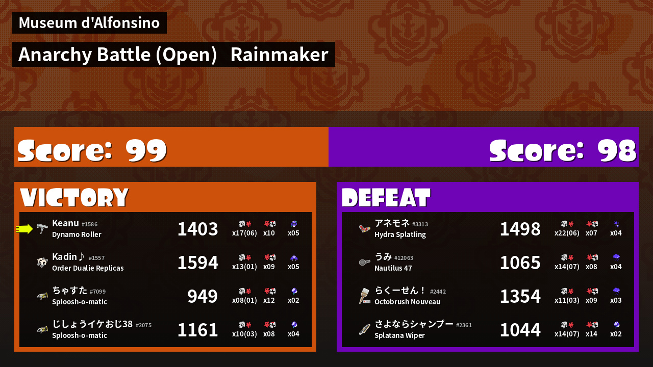 | Mode | Rainmaker - Anarchy Battle (Open) | ||