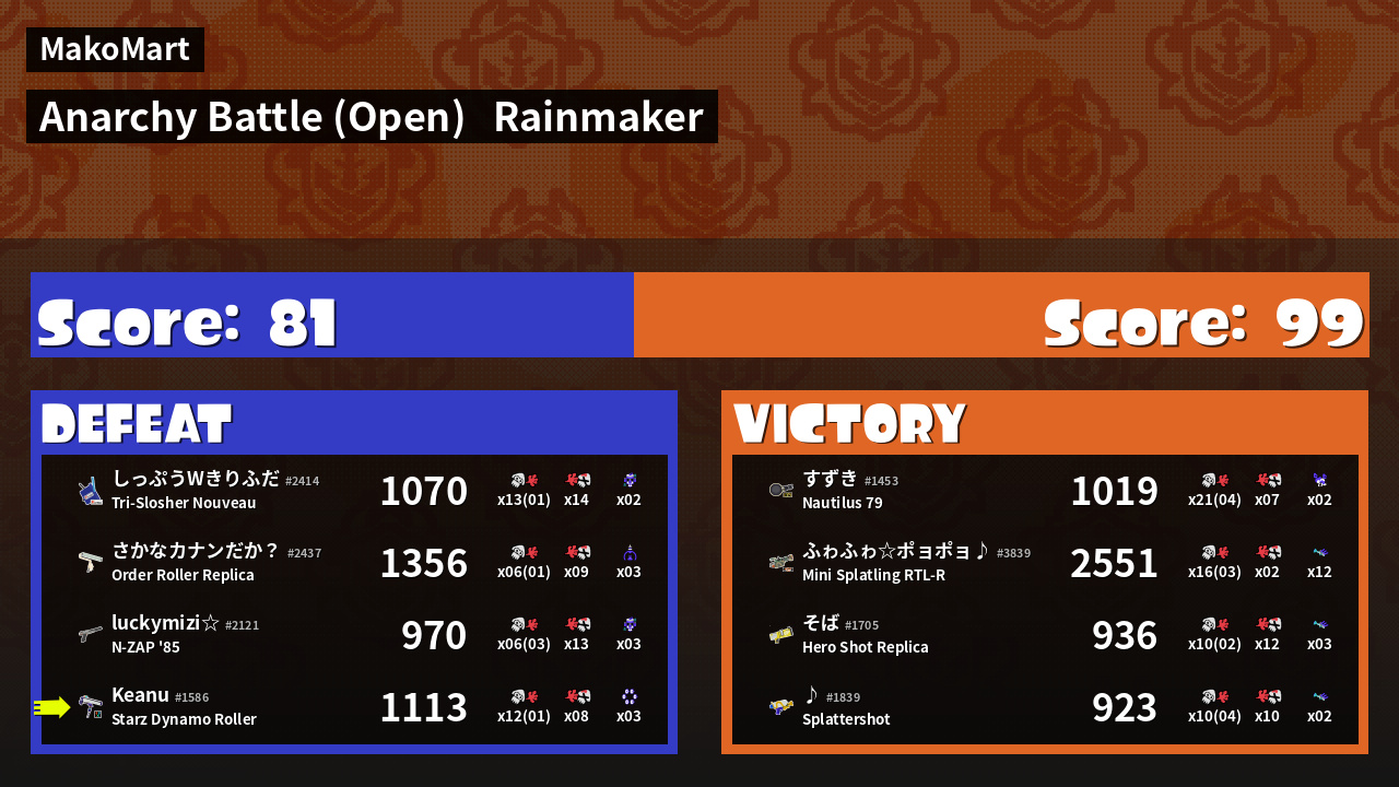 | Mode | Rainmaker - Anarchy Battle (Open) | ||