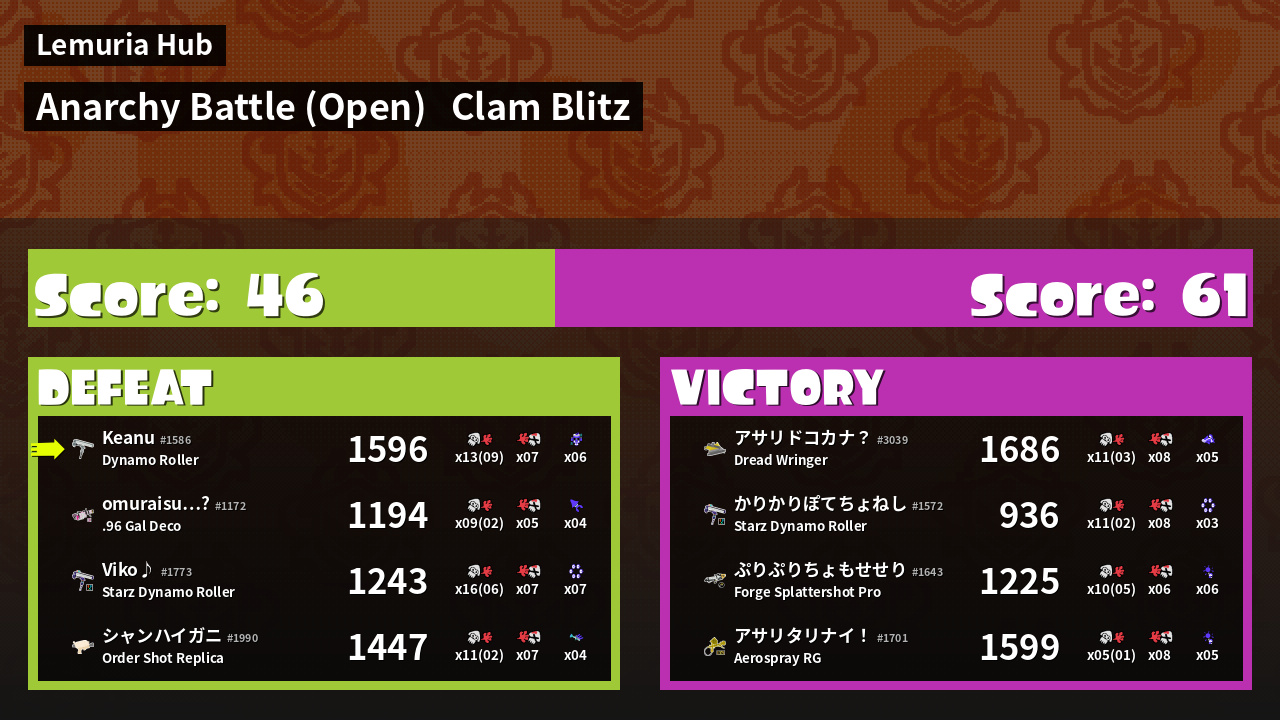 | Mode | Clam Blitz - Anarchy Battle (Open) | ||