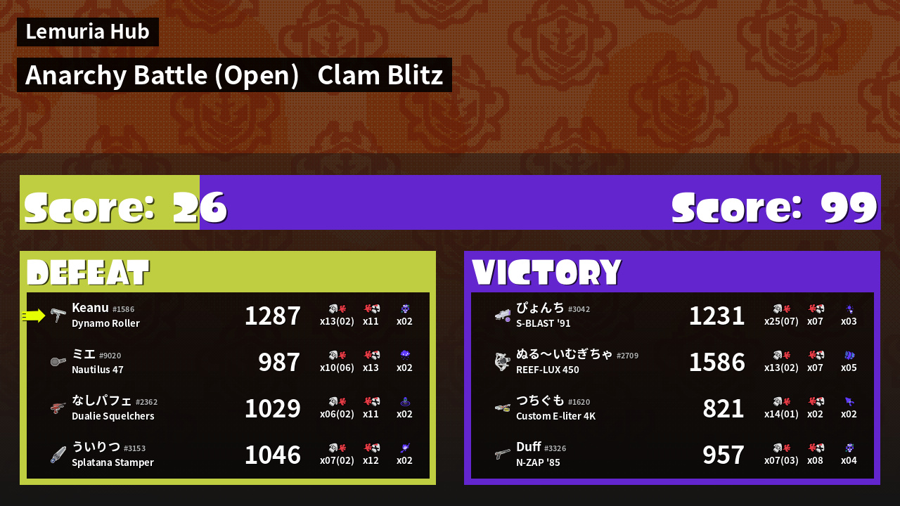 | Mode | Clam Blitz - Anarchy Battle (Open) | ||