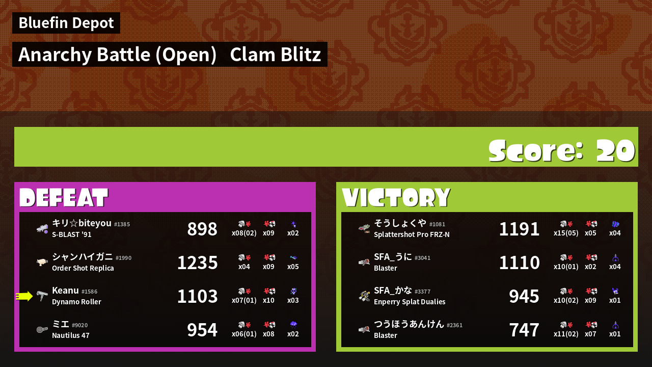 | Mode | Clam Blitz - Anarchy Battle (Open) | ||