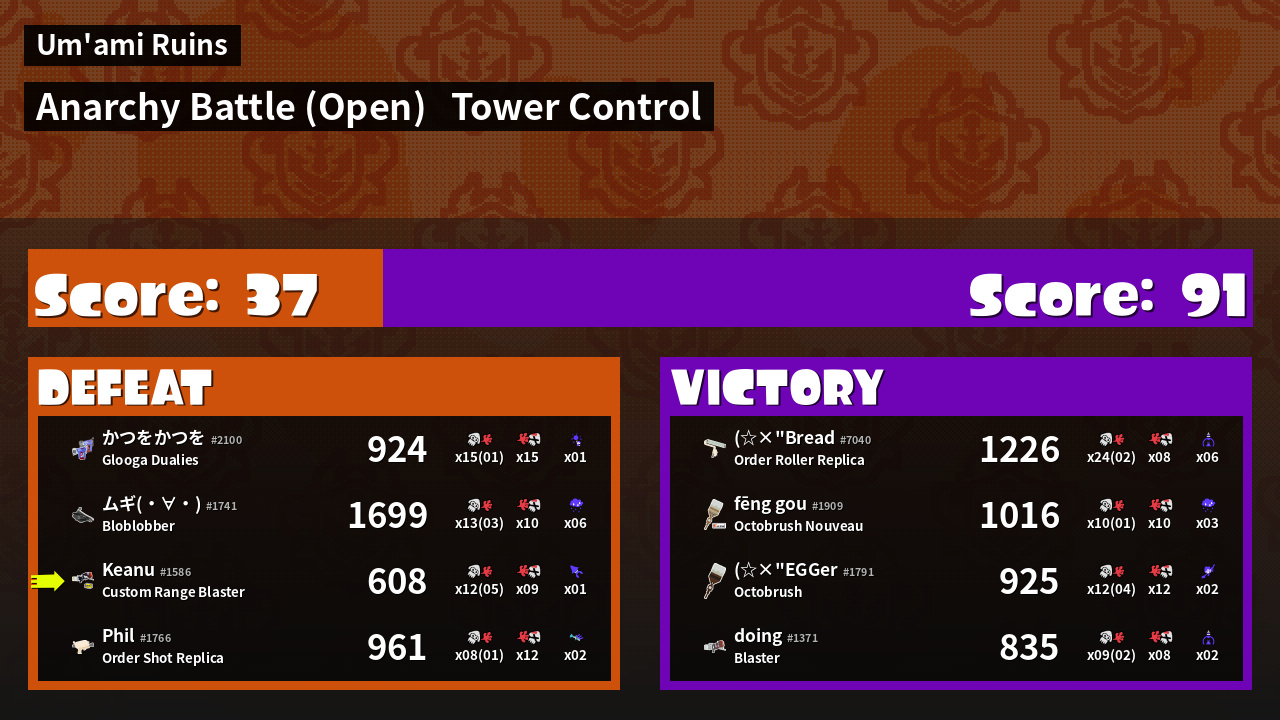 | Mode | Tower Control - Anarchy Battle (Open) | ||