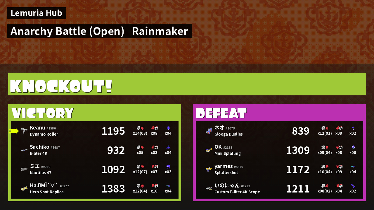 | Mode | Rainmaker - Anarchy Battle (Open) | ||