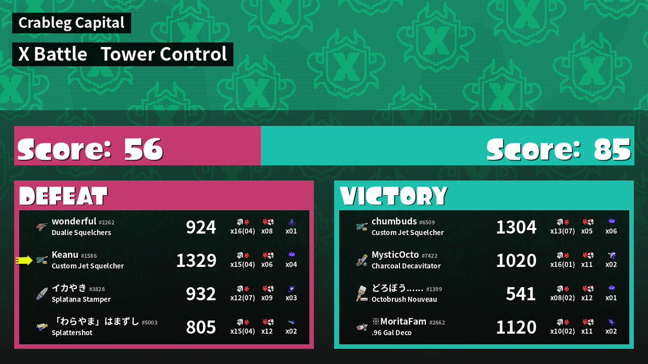 | Mode | Tower Control - X Battle | ||