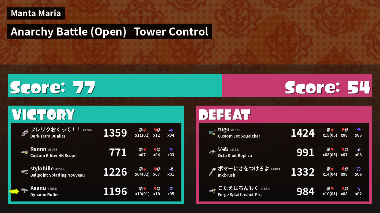 | Mode | Tower Control - Anarchy Battle (Open) | ||