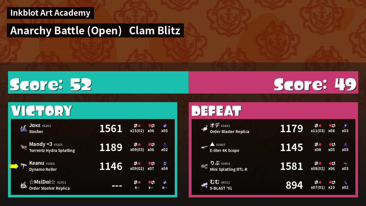 | Mode | Clam Blitz - Anarchy Battle (Open) | ||