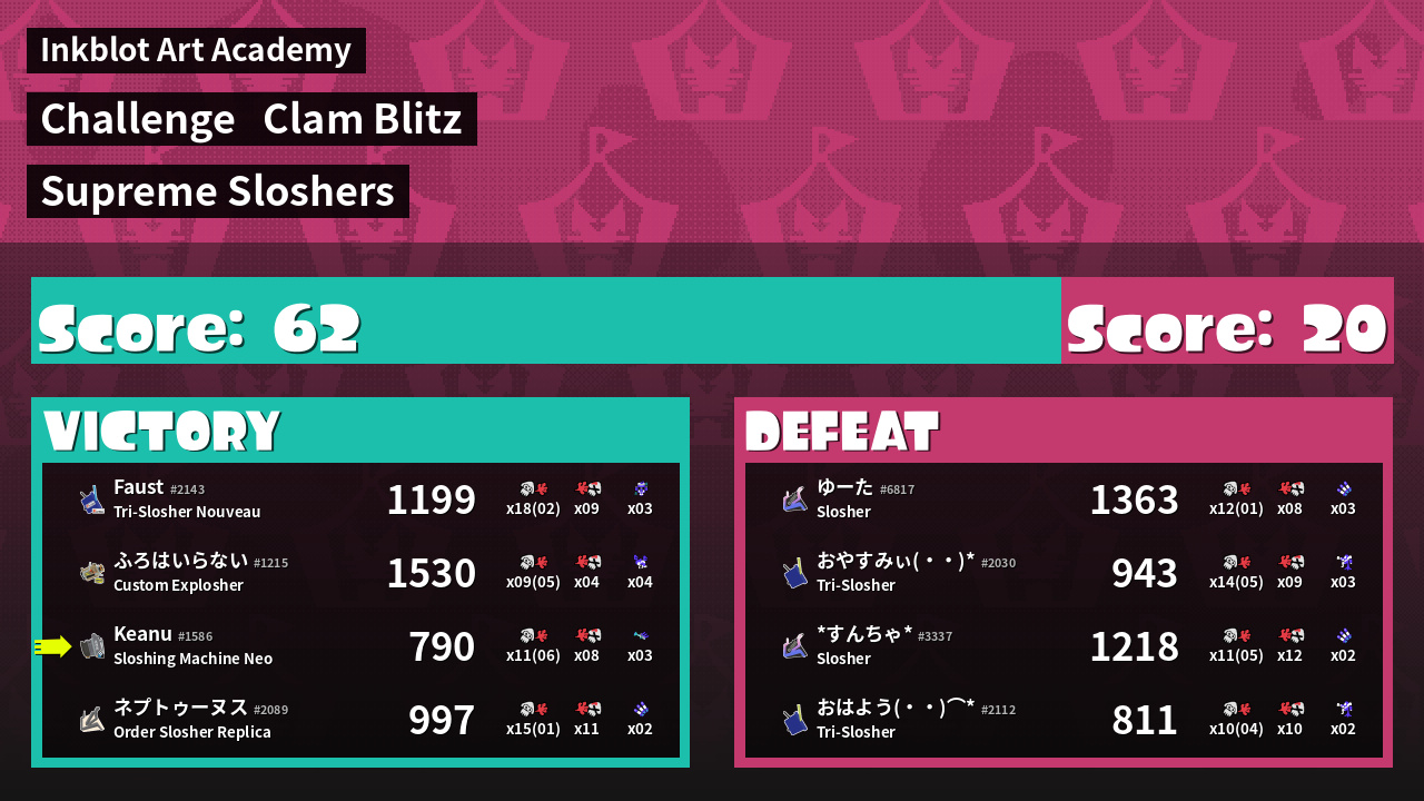 | Medals | #1 Splat Assister #2 Score Booster #2 Clam Carrier | ||