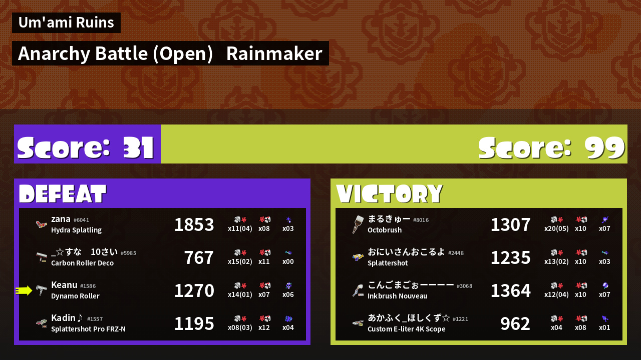 | Mode | Rainmaker - Anarchy Battle (Open) | ||