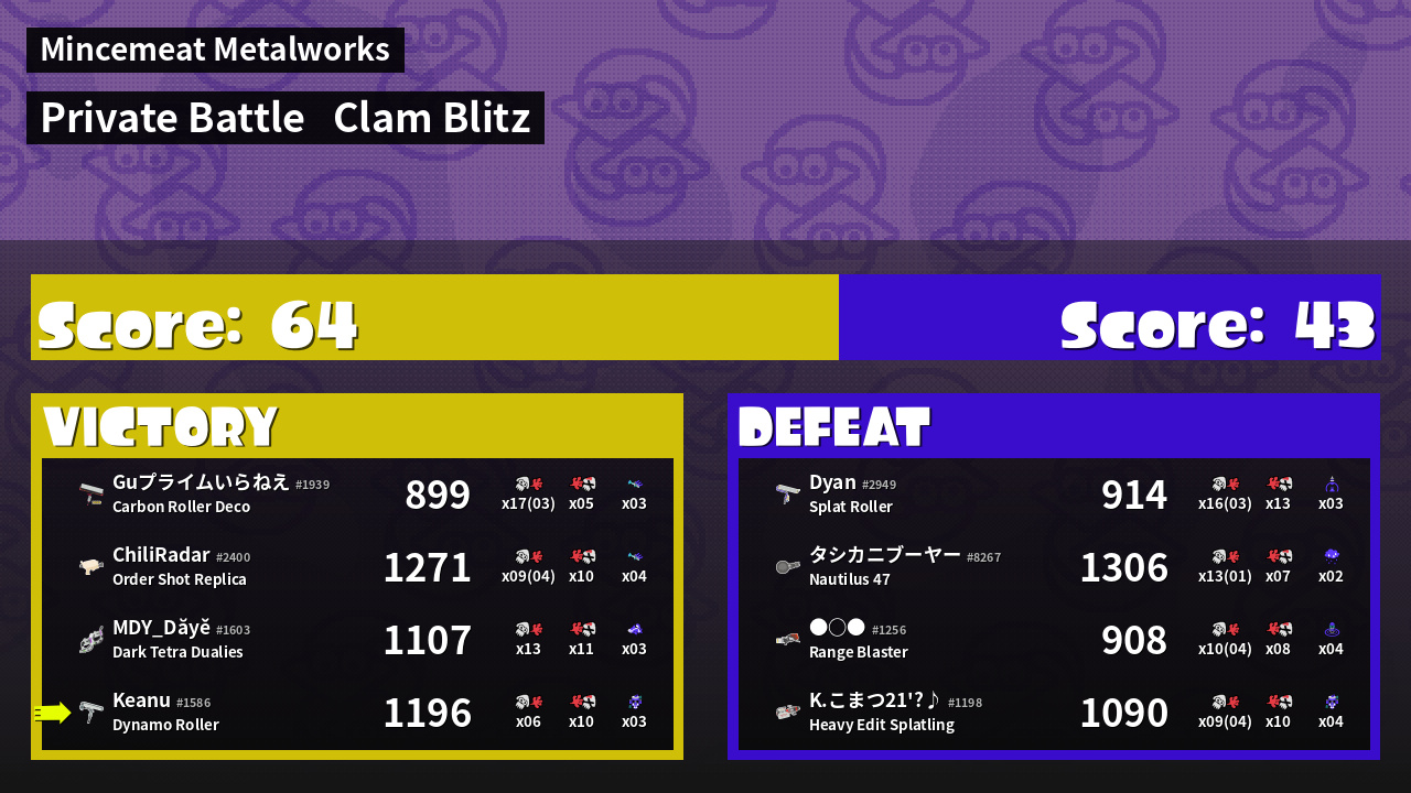 | Weapon | Dynamo Roller ( Sprinkler / Tacticooler) | ||