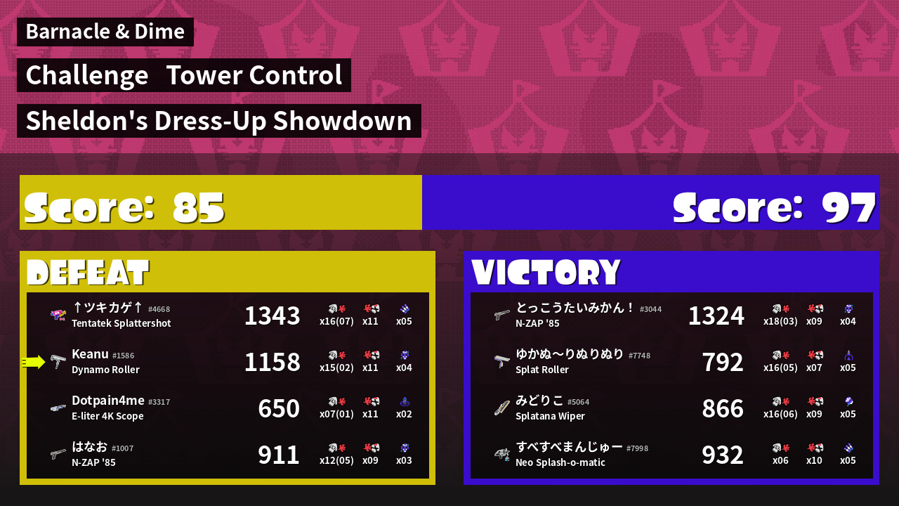 | Medals | #1 Enemy Splatter #2 Overall Splatter #2 Turf Inker | ||