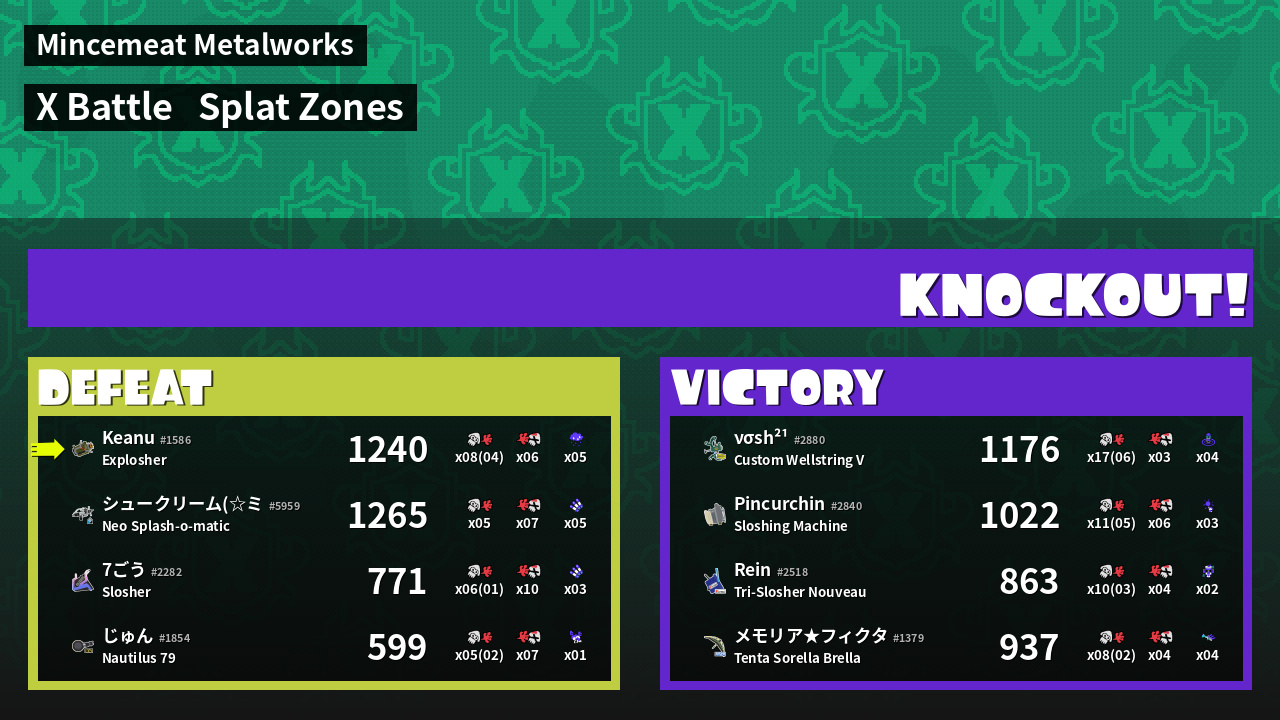 | Mode | Splat Zones - X Battle | ||