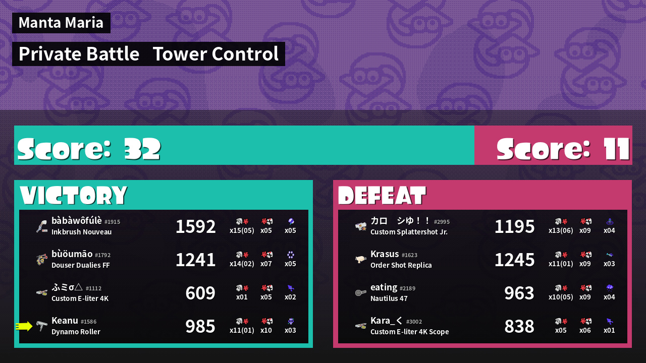 | Weapon | Dynamo Roller ( Sprinkler / Tacticooler) | ||