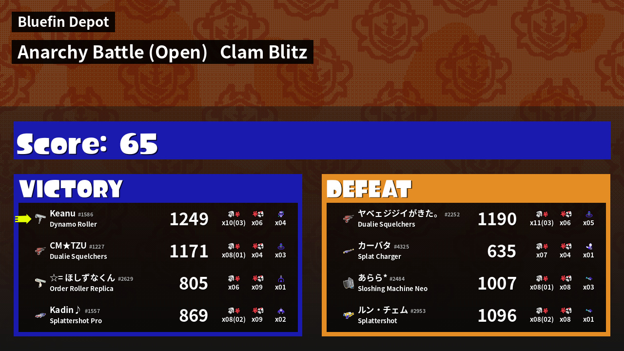 | Mode | Clam Blitz - Anarchy Battle (Open) | ||