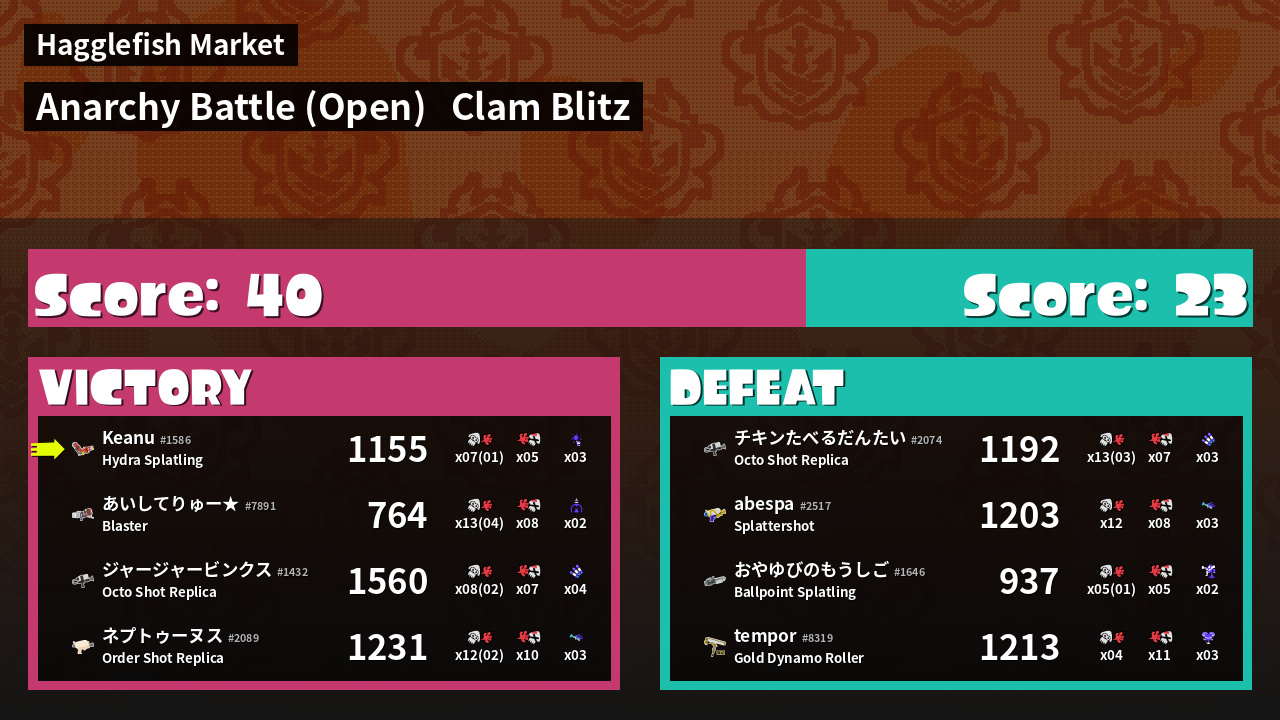 | Mode | Clam Blitz - Anarchy Battle (Open) | ||
