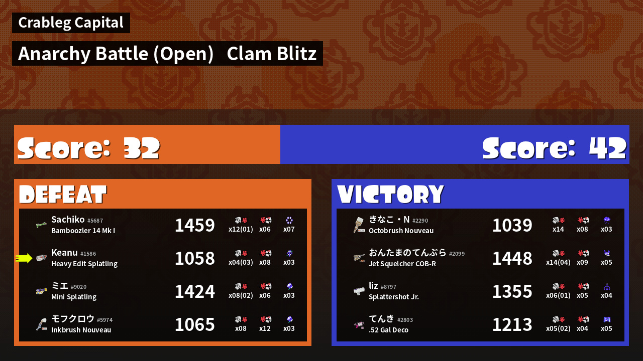 | Mode | Clam Blitz - Anarchy Battle (Open) | ||