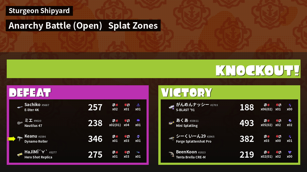 | Mode | Splat Zones - Anarchy Battle (Open) | ||