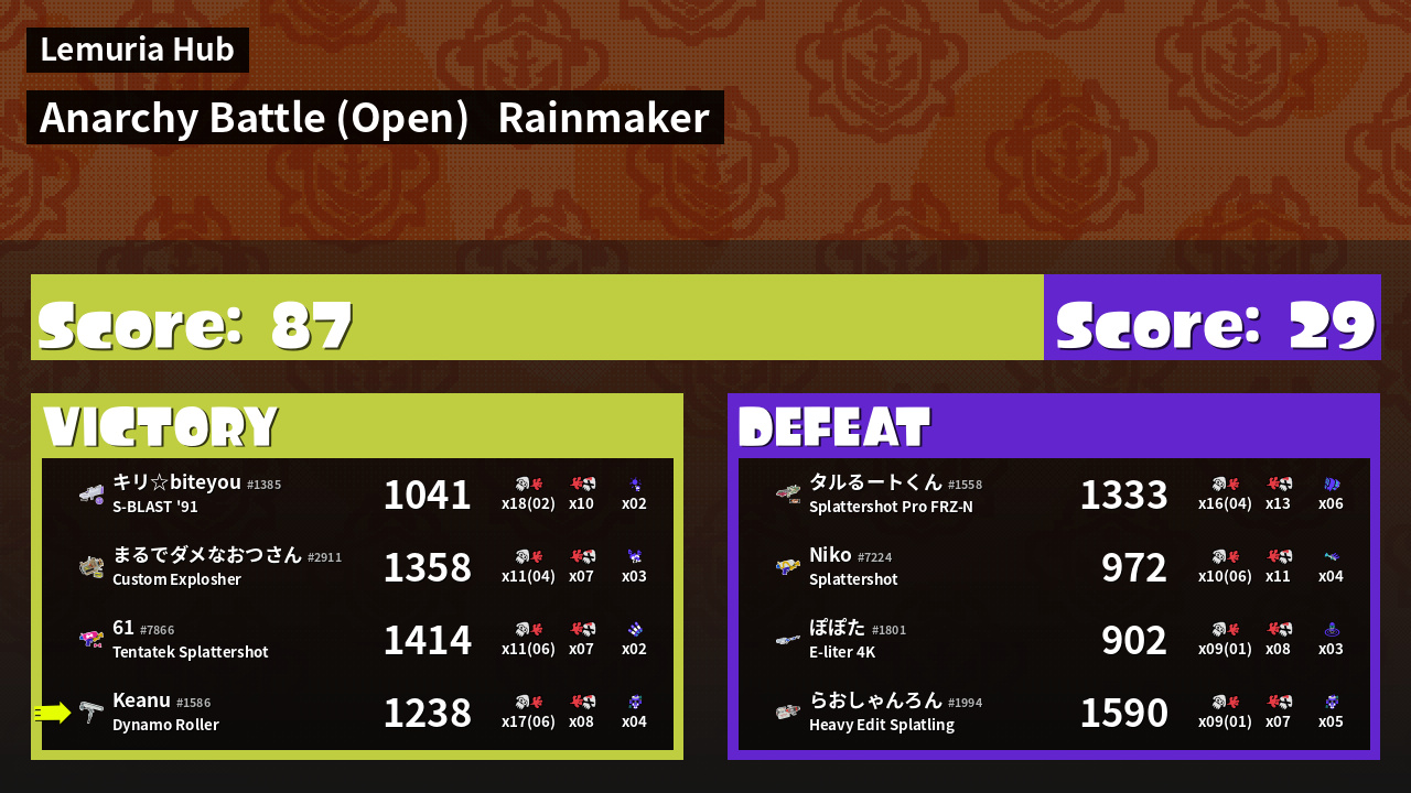| Mode | Rainmaker - Anarchy Battle (Open) | ||