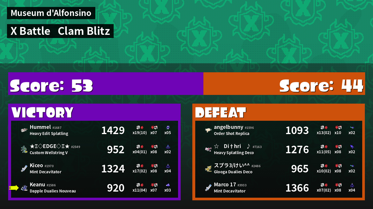 | Mode | Clam Blitz - X Battle | ||