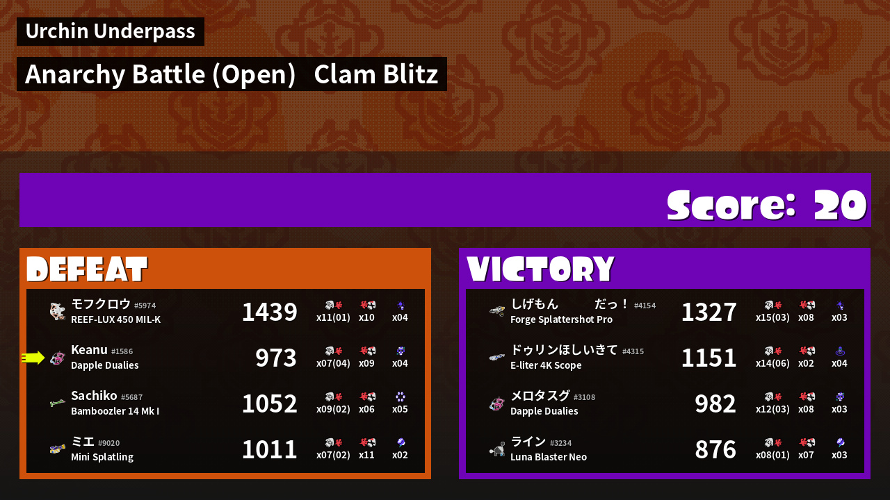 | Mode | Clam Blitz - Anarchy Battle (Open) | ||