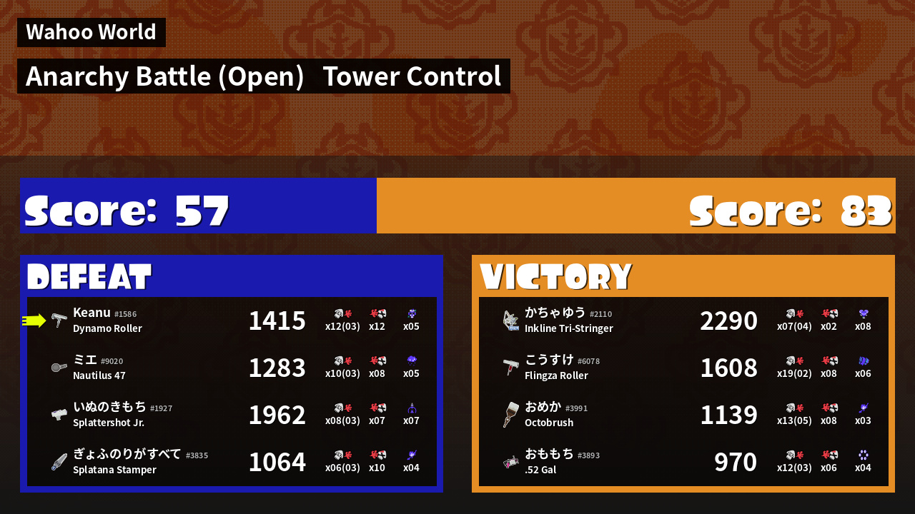 | Mode | Tower Control - Anarchy Battle (Open) | ||